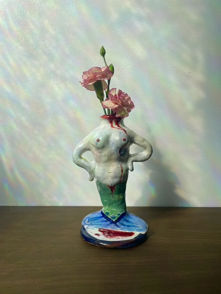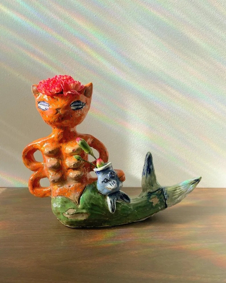 Ceramics Work To get more information on Lindsey Machado's Ceramic work click on the pictures below. Corner Light Over Thinking Chimera Home Traveling Hearth Mermaid Vase Cat Vase Body Vase